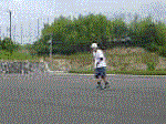 | 滑り方 | 1.フロント方向に滑走。 2.両足の前後差をとる。 3.後ろ足を180度ひねる。 4.開脚の状態で2つのインラインを縦一列に並べる。 5.バランスをとりながら直進する。 |