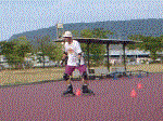 両足のインラインを縦一列でスラローム。