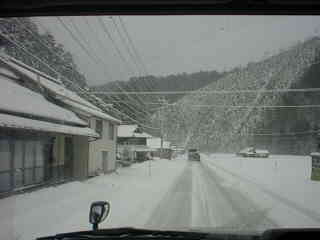 AM5:00起きで準備をして、AM6:00宇多津集合で、大型4WDクロカンタイプで出発。 行きの山陽自動車道の東広島あたりからの雪で、大雪の予感!。 高速道路を降りると一般道は雪国の世界。前車がスリップを起こす場面あり、路側に脱輪する車ありで、 前夜から急に積雪がひどくなった様子。